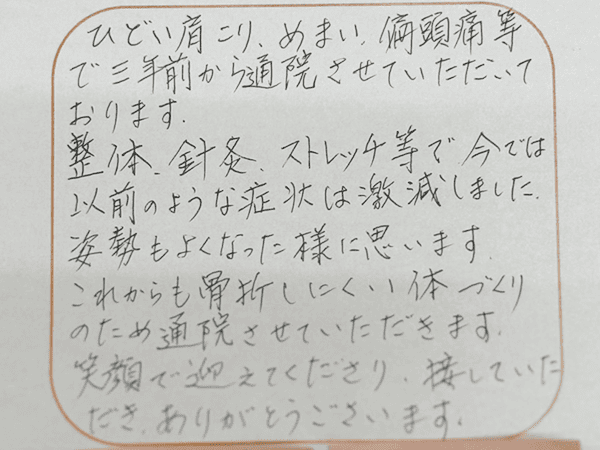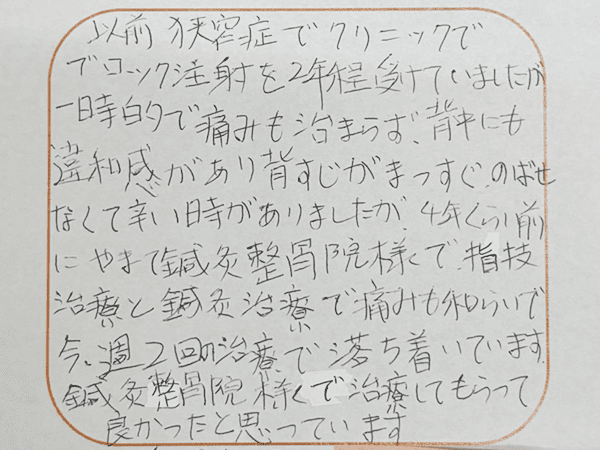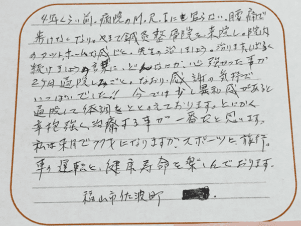尾道市 女性 今必要な施術をきちんと説明してもらえて安心して通えました